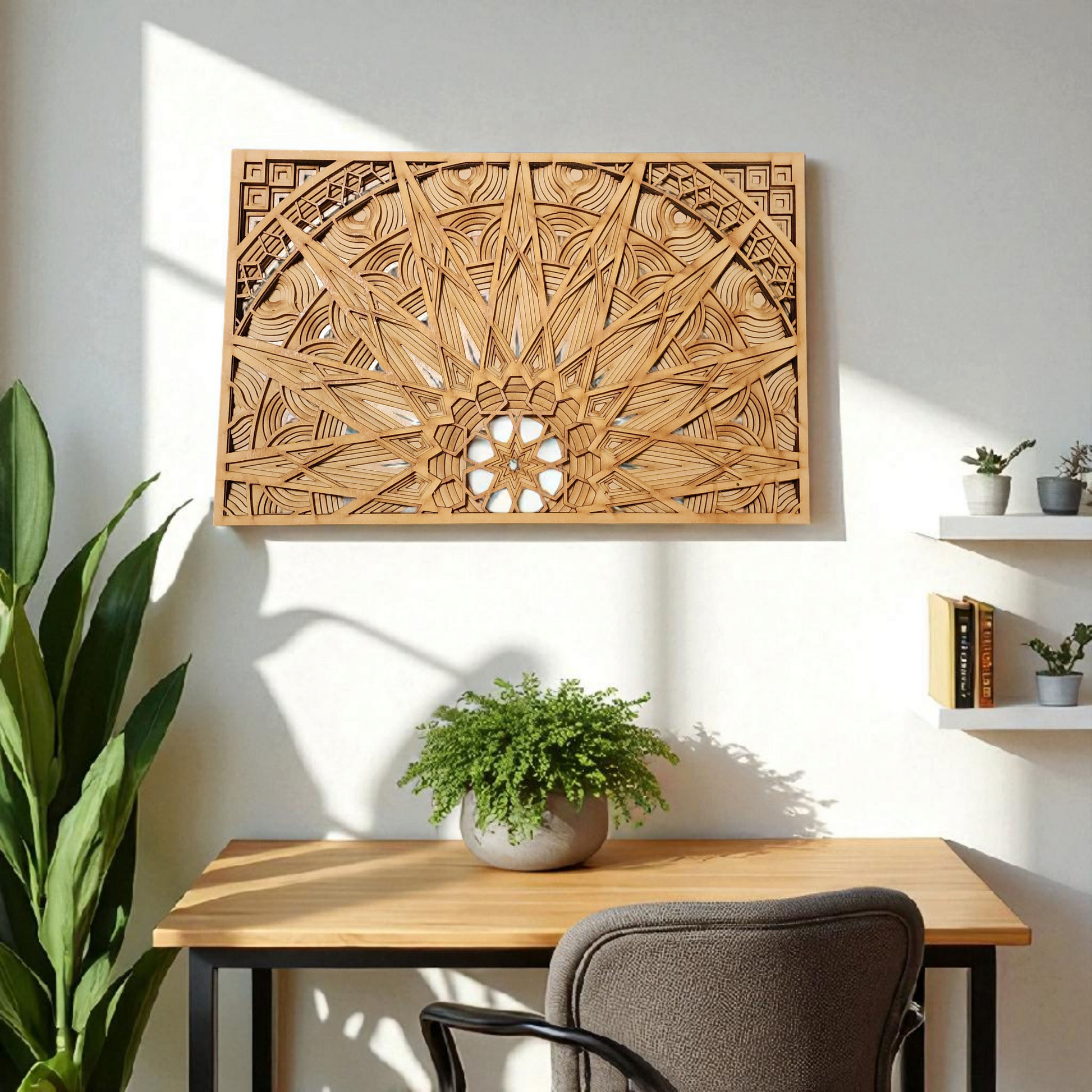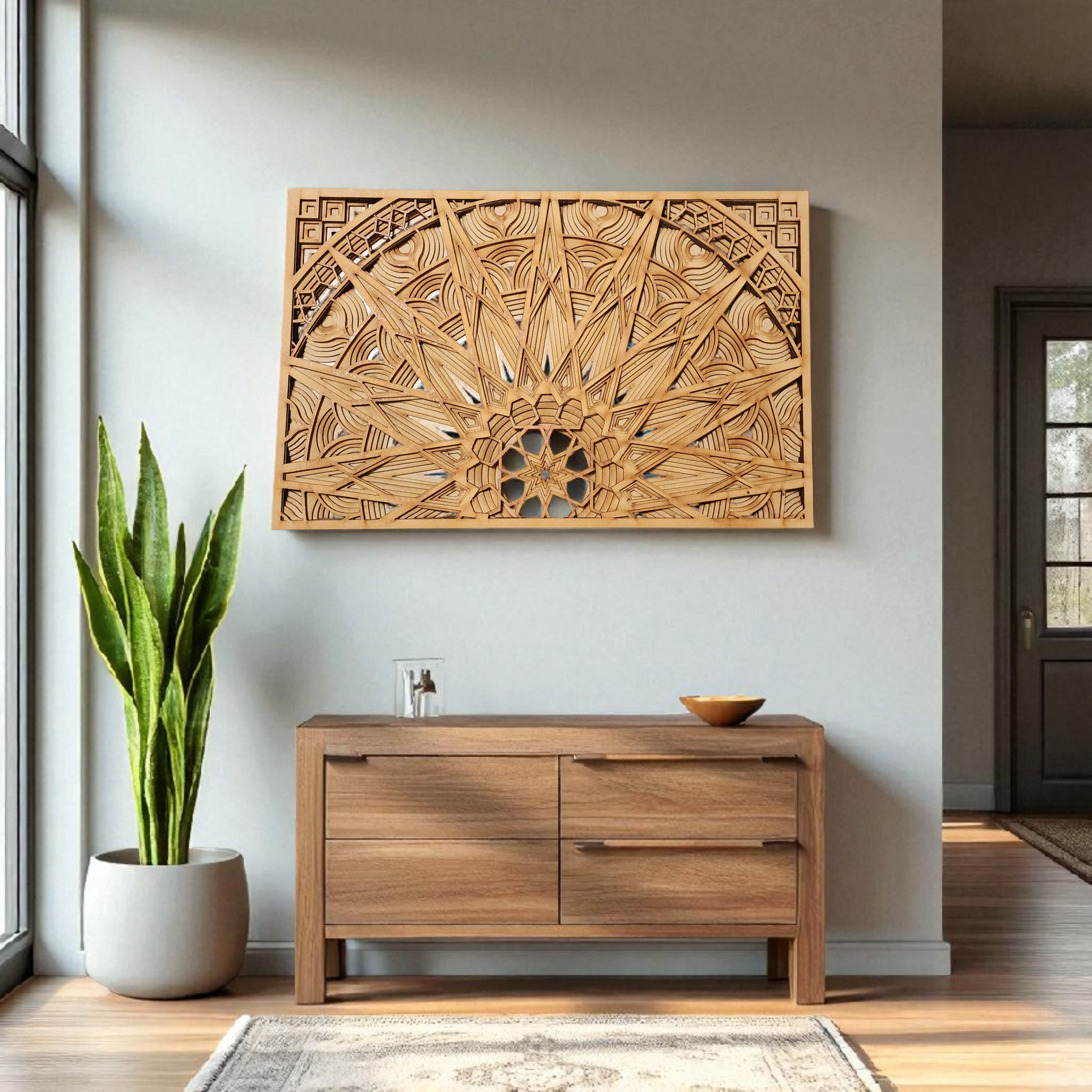 Elevate your space with this laser-cut multi-layer mandala wall art, expertly crafted from high-quality wood. Its intricate design adds depth and texture, creating a captivating focal point that complements boho and contemporary interiors. The precise layering technique enhances visual complexity while maintaining a lightweight structure for easy installation. This piece combines artisanal craftsmanship with modern technology, offering a sophisticated decorative element that enriches any room with subtle elegance and artistic flair.